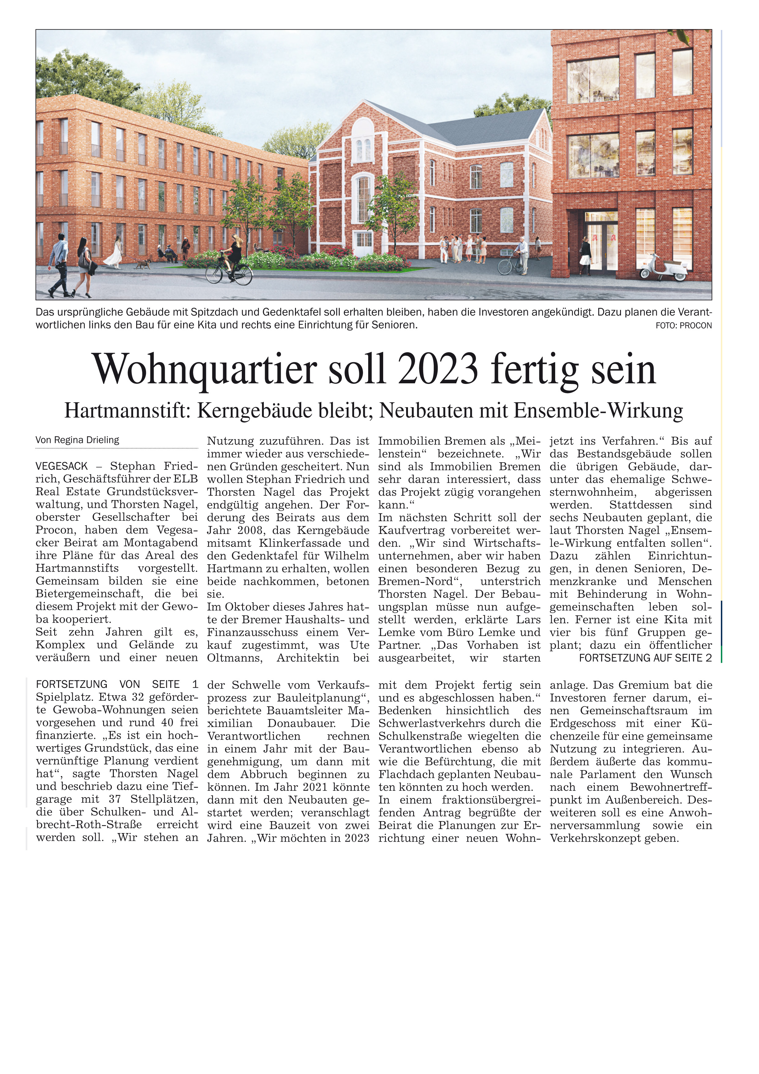 Wir freuen uns auf ein weiteres Projekt im Bremer Norden. Gemeinsam mit der ELB Real Estate Grundstücksverwaltungsgesellschaft, unserem Kooperationspartner GEWOBA und der Schönborn Schmitz Architekten GbR werden wir einen wichtigen städtebaulichen Baustein für Vegesack entwickeln und ein spannendes Quartier realisieren.